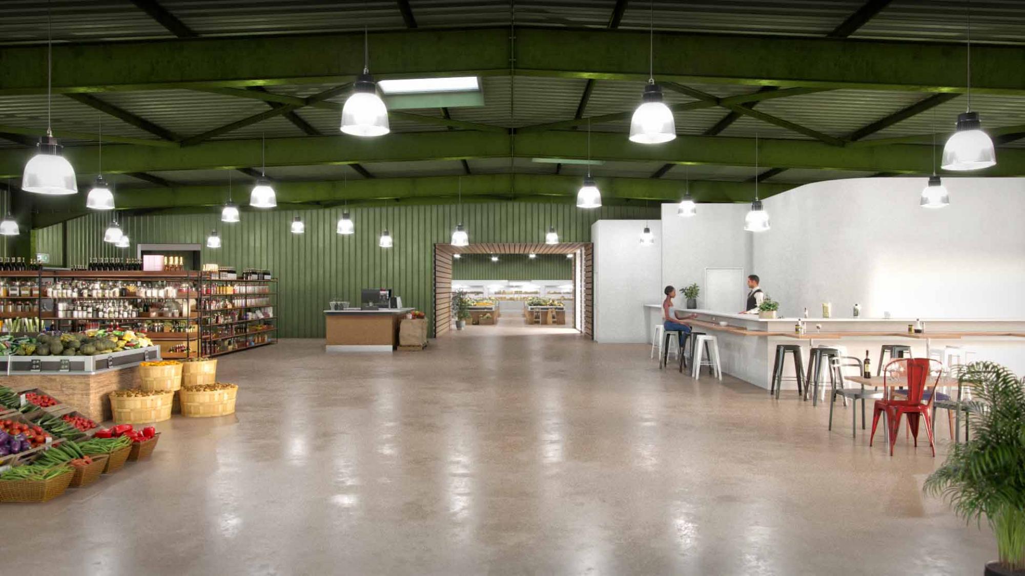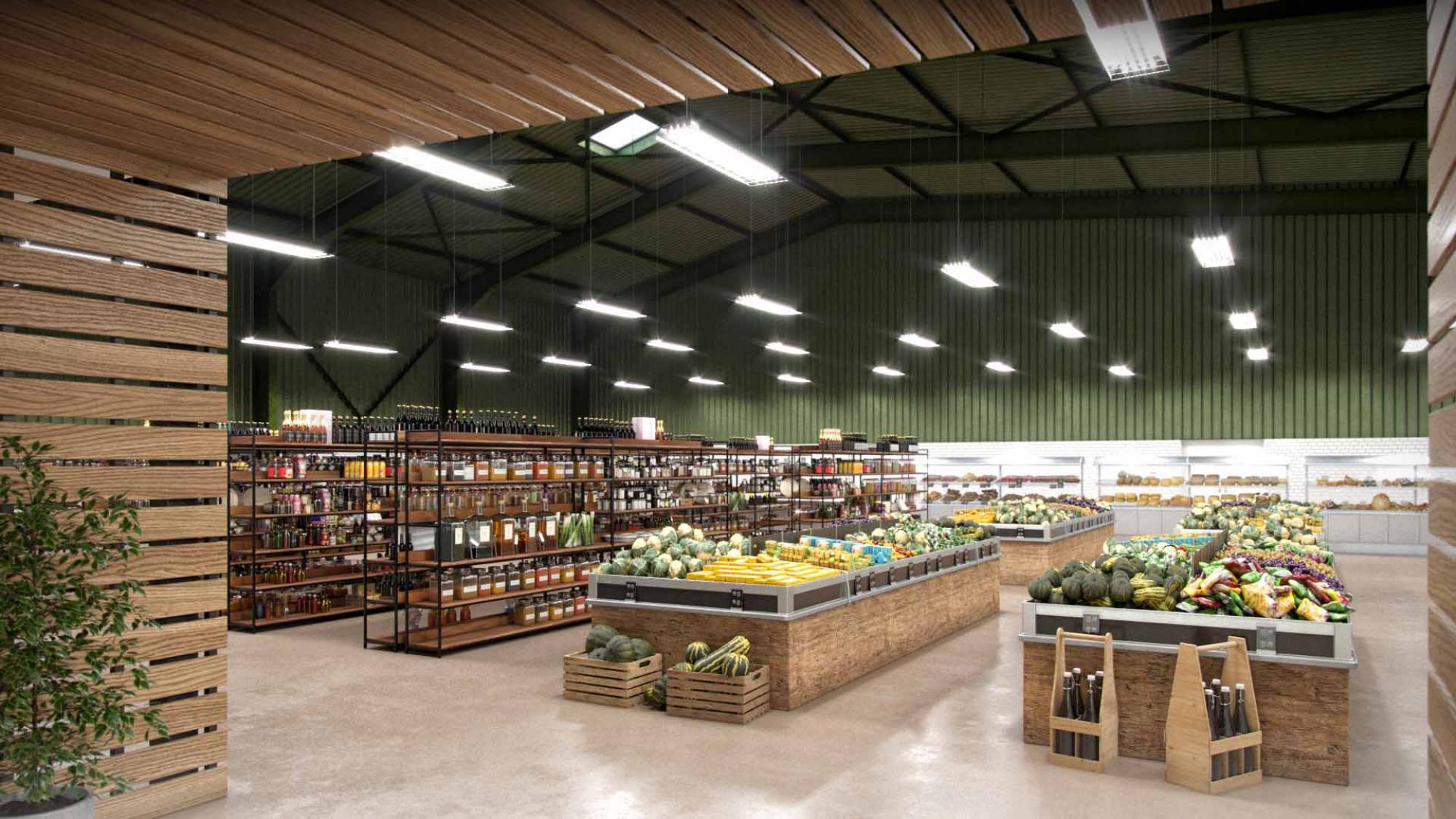Description : Construction d’un supermarché de producteurs de produits fermiers.